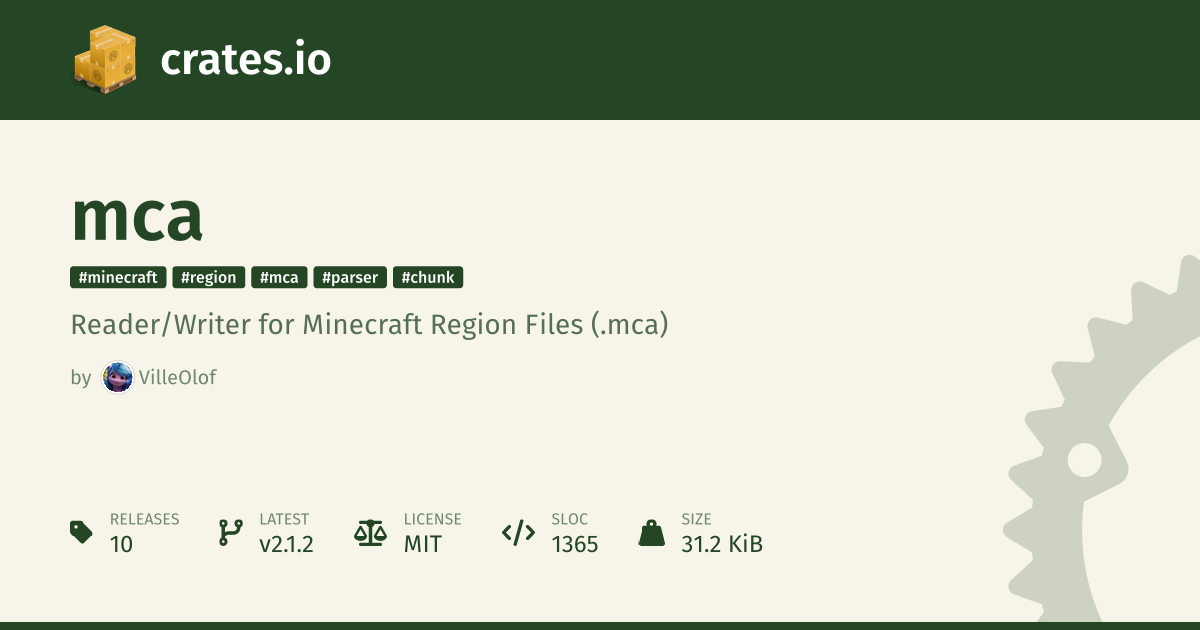 Och allt detta för mca: Det enda rust biblioteket du behöver för Minecraft region files.